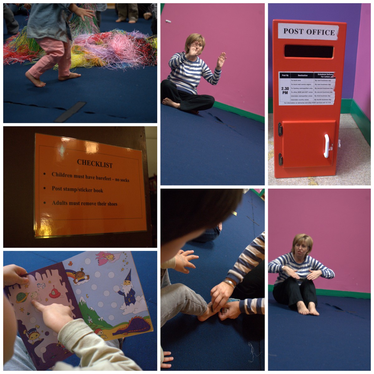 Children quickly learn the routine that the first thing they do when they enter this room is to post their book into the little red Post Office box.