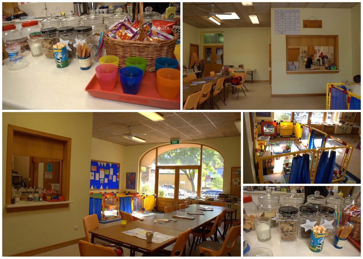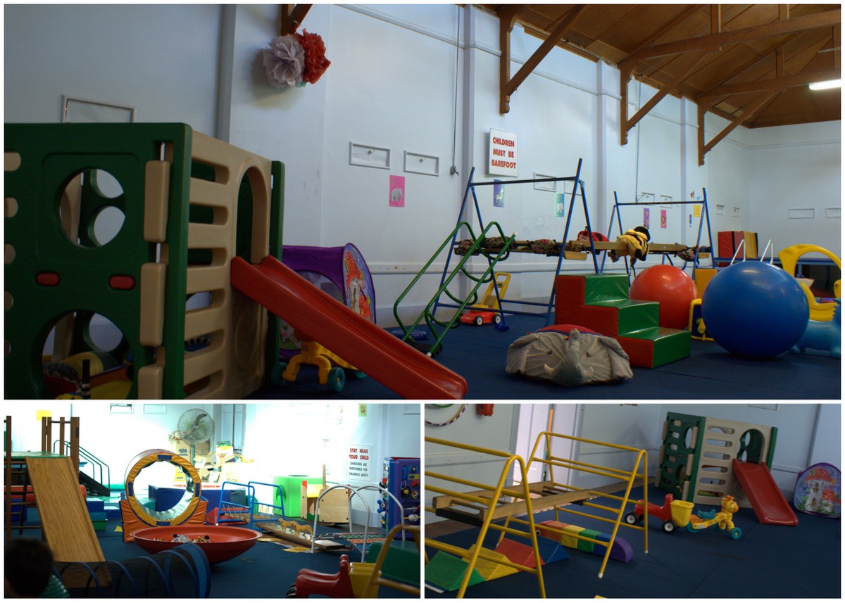 The pictures above show the big front room at Unley where you can leave strollers, shoes and bags along the side. All children must have shoes and socks off for safety. The play equipment gets changed around every week to make things interesting. For example the big U-shaped swing below is sometimes a bucket seat swing while other times it’s trapeze rings with a run up ramp (my son’s favourite). The toys and activities change to match the current themes for the term and involve the children in all sorts of different skills, helping them develop their fine and gross motor skills and encourage problem solving.