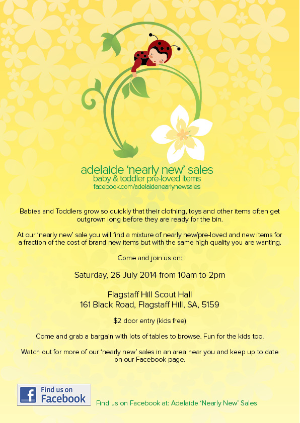 For more information visit the Adelaide Nearly New Sales Facebook page here.