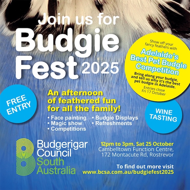 For more information and all enquiries please visit the Budgerigar Council of South Australia website or follow their Facebook page for updates.