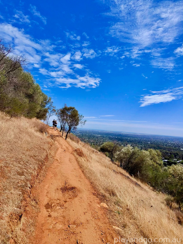 Another weekend, we tackled the 3.4km Beaumont Circuit, which climbs into Mount Osmond Reserve via a series of narrow switchbacks. This route follows sections of the Beaumont Link trail and the historic Pioneer Women’s Trail.