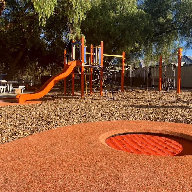 Designed for the local community, the playground includes a picnic setting, drinking fountain, swings, in-ground trampolines, slide, climbing frame, springer, large blackboard and nature play elements. The playground is located near the George Crawford Community Hall and Windsor Gardens Netball Courts.