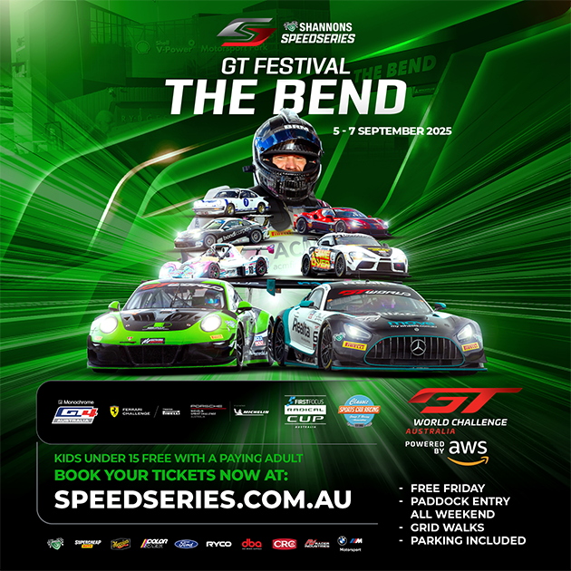 GT Festival The Bend, Round 5 of the 2025 Shannons SpeedSeries, is bringing Ferrari, Porsche, McLaren, Lamborghini, Ford Mustang, Radical Cup Australia’s open wheelers, and much more to The Shell V-Power Motorsport Park!