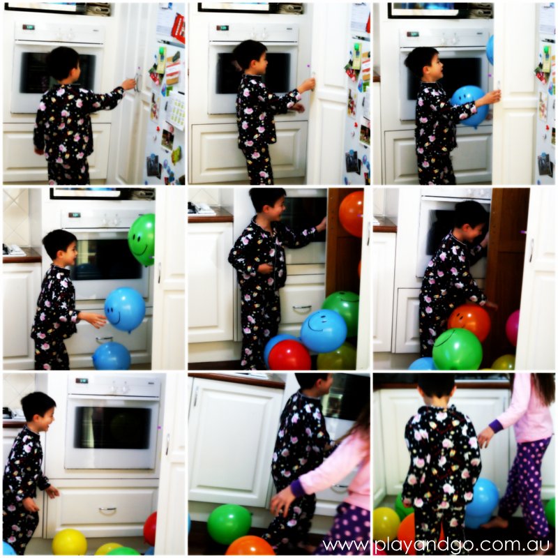 We filled the pantry with balloons the night before. When we asked the Birthday boy to check the pantry in the morning he was greeted with coloured balloons falling out at him.