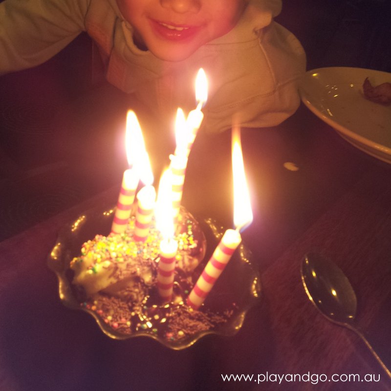 You don’t always need a Birthday cake to celebrate. We often put some Birthday candles in a serve of ice cream to sing ‘Happy Birthday’. In fact you can put Birthday candles into anything and it’s suddenly special. Another one of my kids’ favourite is the Chocolate Bavarian ice cream cake by Sara Lee (from your supermarket frozen section). Just add Birthday candles and everyone is happy.
