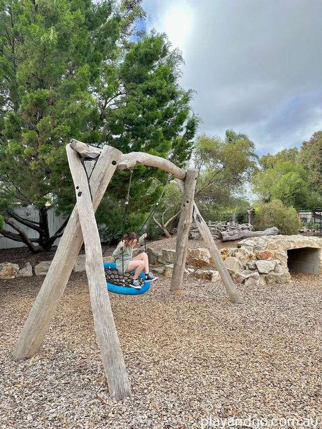 Tucked away in Netley, on a quiet residential street, is this lovely little nature play-based park. With climbing logs, a stone cave and a giant wooden nest, it feels like a miniature version of the Mukanthi Nature playspace at Morialta.