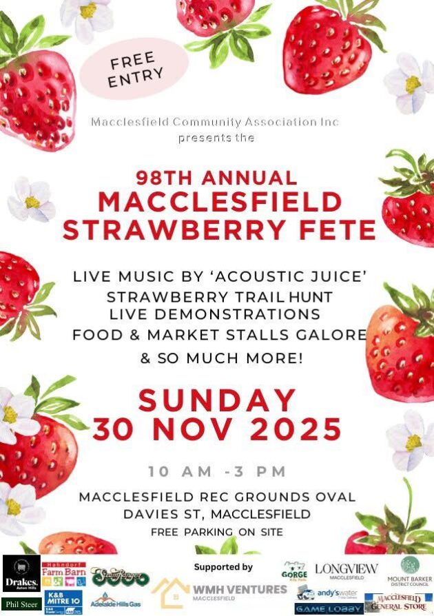 For more information and all enquiries please visit the Macclesfield SA website or follow the Macclesfield Community Facebook page.