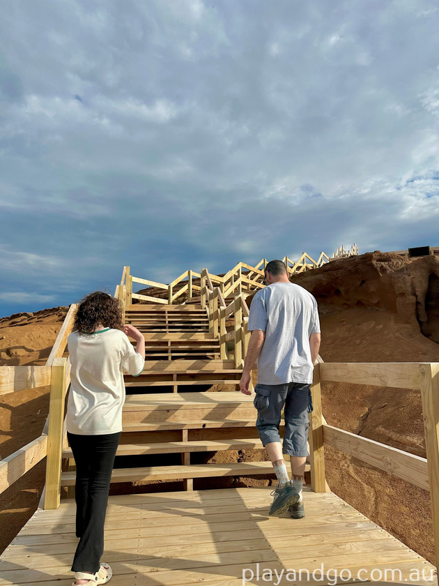 The easiest loop to walk will take you around the back of the tourist train station, past an old powder magazine, Richmans Engine House and Richmans tailings heap. There is a series of wooden steps leading to the top of the tailings heap, and we recommend climbing up here – it’s the tallest point in Moonta! The view from the top is fantastic.