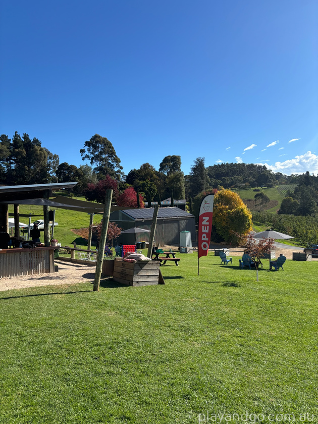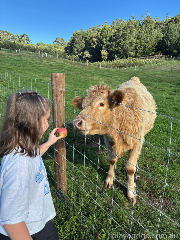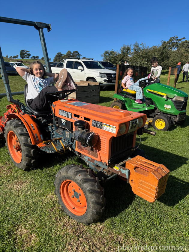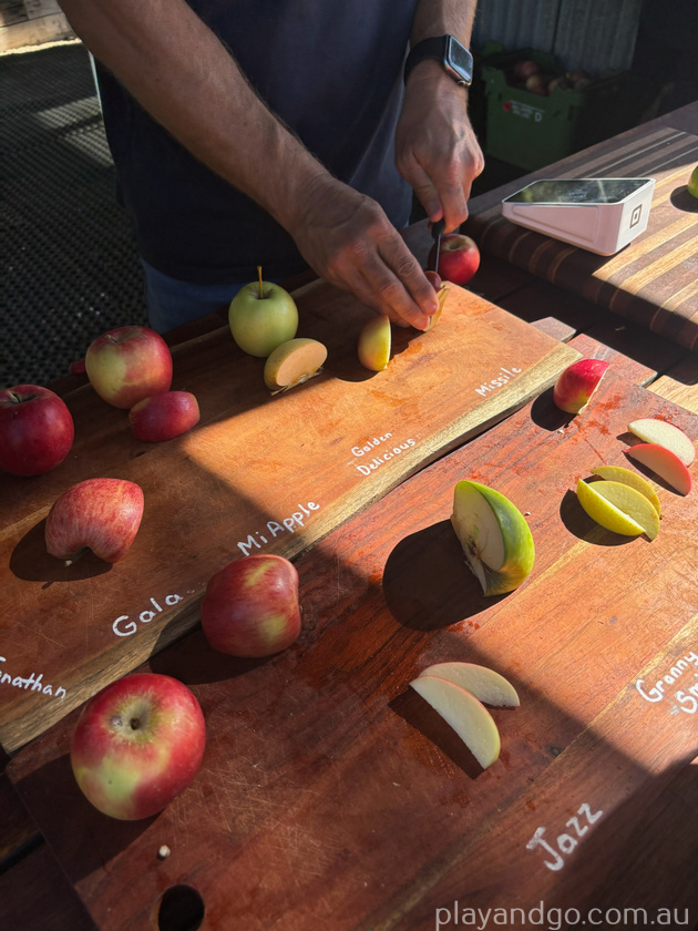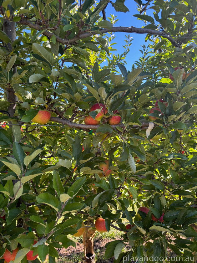 Gavin chats to us about the apple varieties on offer and the kids have the opportunity to taste them and receive a quick demo on how to pick apples. We purchase a bag, pay the entry price and make a bee line for the Jazz row. Our kids are usually pink lady lovers but having the opportunity to try Jazz apples unlocks a new love for them. We fill up a bag with a combination of Pink Lady, Jazz and Fuji and head to the tractors on the lawn.