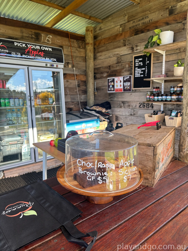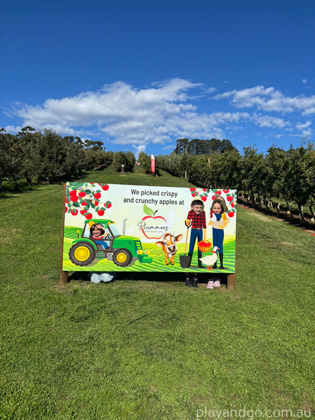 As we walk towards the entry to Plummers Pick Your Own the kids immediately get excited by the insert your face photo wall and run towards it to take a happy snap. We then make our way to the shopfront in the middle of the site and are welcomed by the lovely owners Gavin and Sheree, a husband and wife team who are fifth generation apple growers.