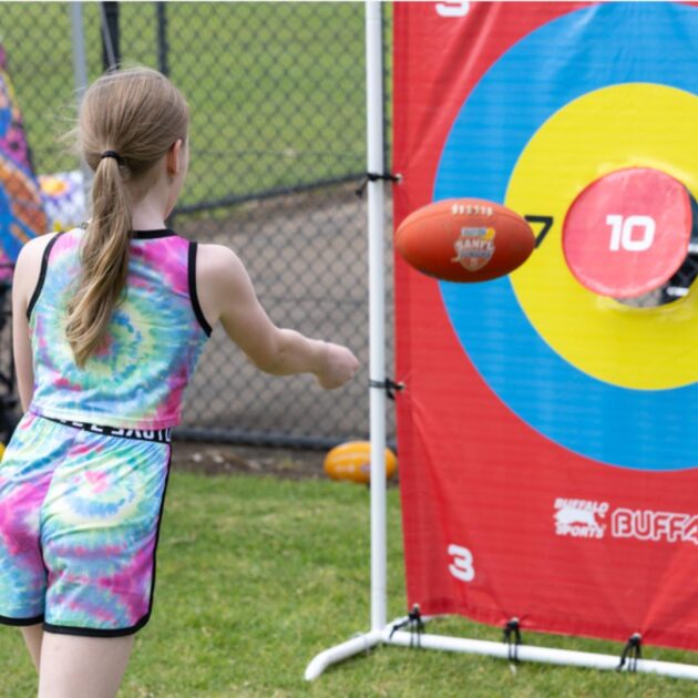 Kids can enjoy lots of games and activities, from an inflatable soccer pitch and giant dart board to multisport inflatables and AFL skill challenges.