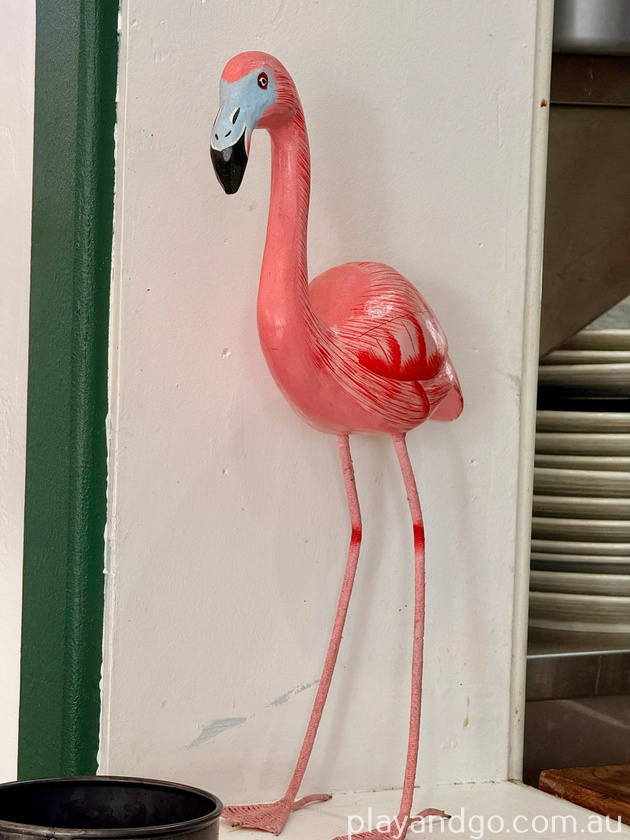 The café opened in November 2023 and is the brainchild of friends Homi and Sam. The name comes from Homi’s love of ostriches, with the outdoor signage showing an ostrich and flamingo in playful combat. Flamingos pop up throughout the décor too.
