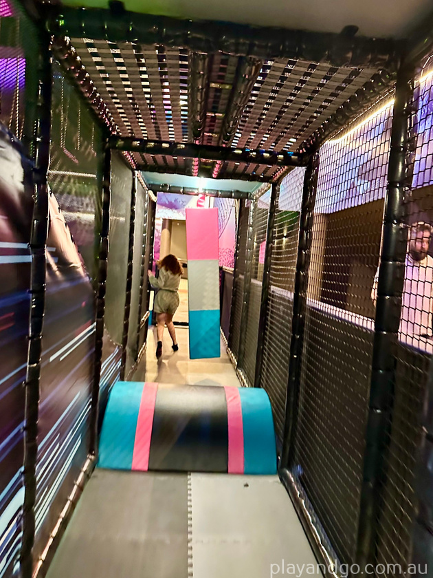 Don’t miss the timed wall-based obstacle course. This is tucked behind the entrance to the ninja warrior obstacles and can be easy to miss. Press the timer button, race up the stairs and then along the wall, avoiding the moving obstacles to reach the timer stop button at the other end.