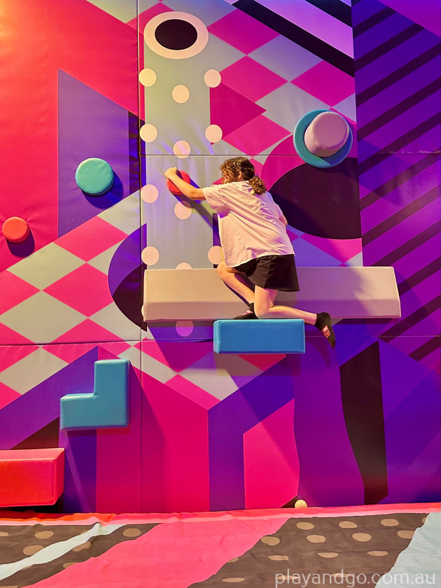 Take the escalator up to the second floor of Rundle Place (one floor above Hijinx Hotel and Archie Brothers) and pass through the bright pink torii gate. Head to check in to grab your grip socks and optional gloves, place your shoes in the provided cubbies, and start exploring!