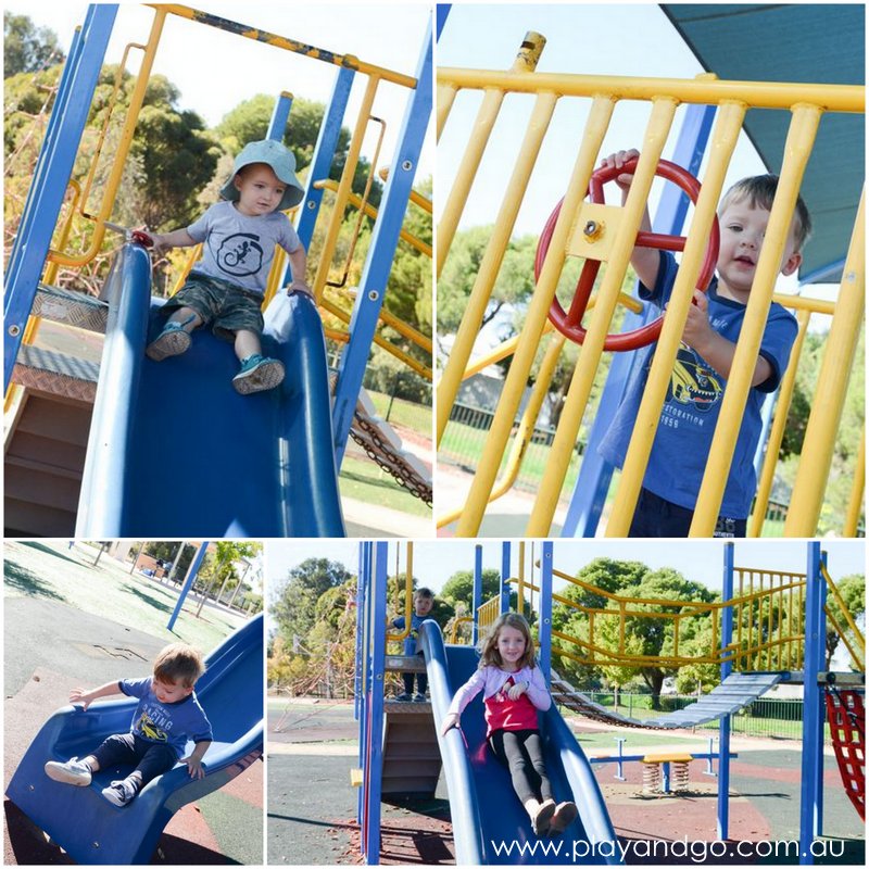There is ample shade which helped us have a long stay on this sunny day and toilets are just outside the fence. The adjacent oval is another option for big kids to have a run around and a kick of the ball.