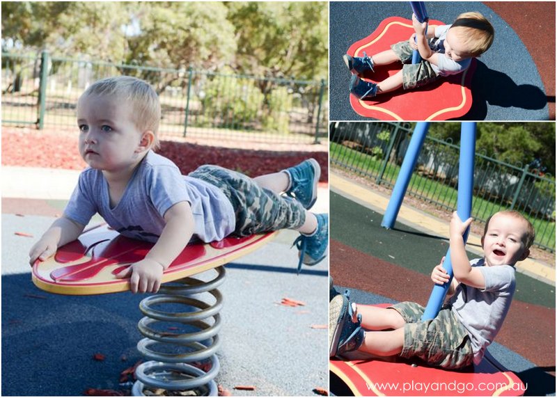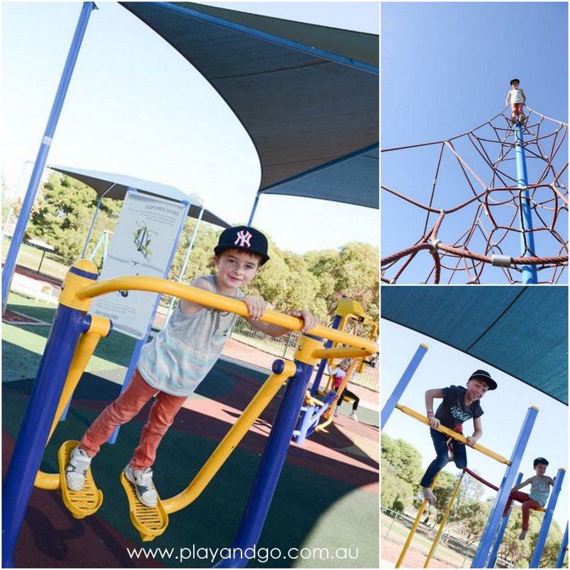 Our kids also liked investigating the fitness equipment but do take care that toddlers are under supervision in this part of the playground. Some of the leg-swinging pieces could whack an unsuspecting little one in the face. This was the only area we felt needed a bit of extra care with our 2 year olds.
